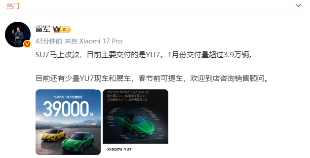 新势力“价格屠夫”小米YU7,2月综合优惠卷疯同行。