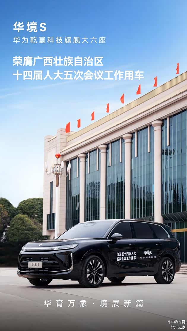 【华中汽车网报道】2026年2月2日,广西壮族自治区第十四届人民代表大会第五次会议在南宁隆重召开。华为乾崑科技旗舰大六座——华境S,荣膺此次自治区人大会议工作用车,在会议期间为与会代表及工作人员提供智能、舒适、安全的一体化出行服务与保障。这已是上汽通用五菱旗下车型连续两年荣膺自治区人大会议工作用车,以硬核产品实力持续护航广西政务出行。