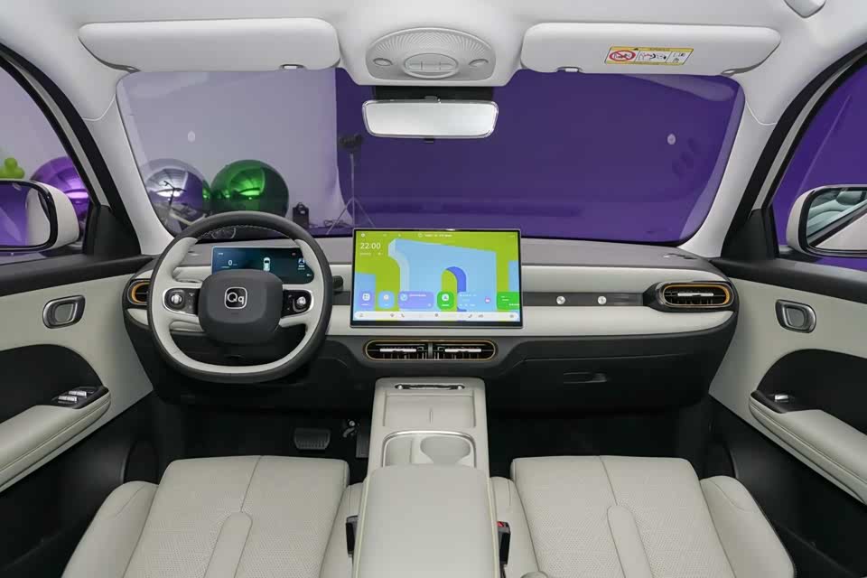 新车延续了QQ经典的圆润线条,椭圆形LED大灯+封闭前脸,呆萌感十足。悬浮车顶、撞色后视镜、17英寸四叶草轮毂,细节处处显年轻。车身尺寸比同级略有优势,看着小巧,空间却不小。