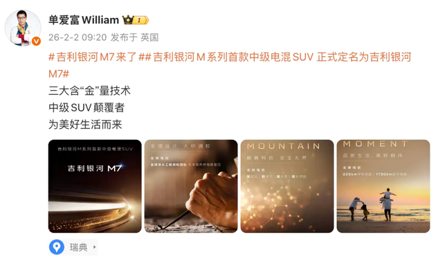 【懂车之道 产品】 近日,懂车之道获悉,吉利 银河M7官图曝光。新车定位5座SUV,动力上,搭载1.5L发动机+电机组成的插电混动系统,具备225km的纯电续航以及1730km的综合续航。下面,和大家一起来看看新车的产品力如何?