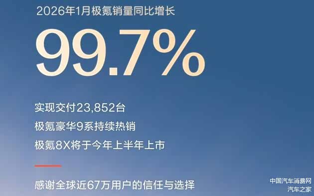 得益于极氪9X的热销,极氪品牌近几个月销量表现都不错,今年1月份交付量达到23852辆。今年品牌重磅车型极氪8X计划将在今年上半年上市,该车类似9X的设计风格,定位中大型SUV,采用5座/6座两种座椅布局,起步价大概率会在40万以下。