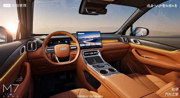 新车的长宽高分别为4770/1905/1685毫米,轴距为2785毫米。进入车内,银河M7的内饰注重质感营造。中控台配备了大尺寸悬浮式屏幕,从界面UI判断,预计将搭载Flyme Auto车机系统。中央扶手区域保留了大量的物理按键,并采用了水晶质感的材质。配置方面,可见前排手机无线充电面板及氛围灯等。