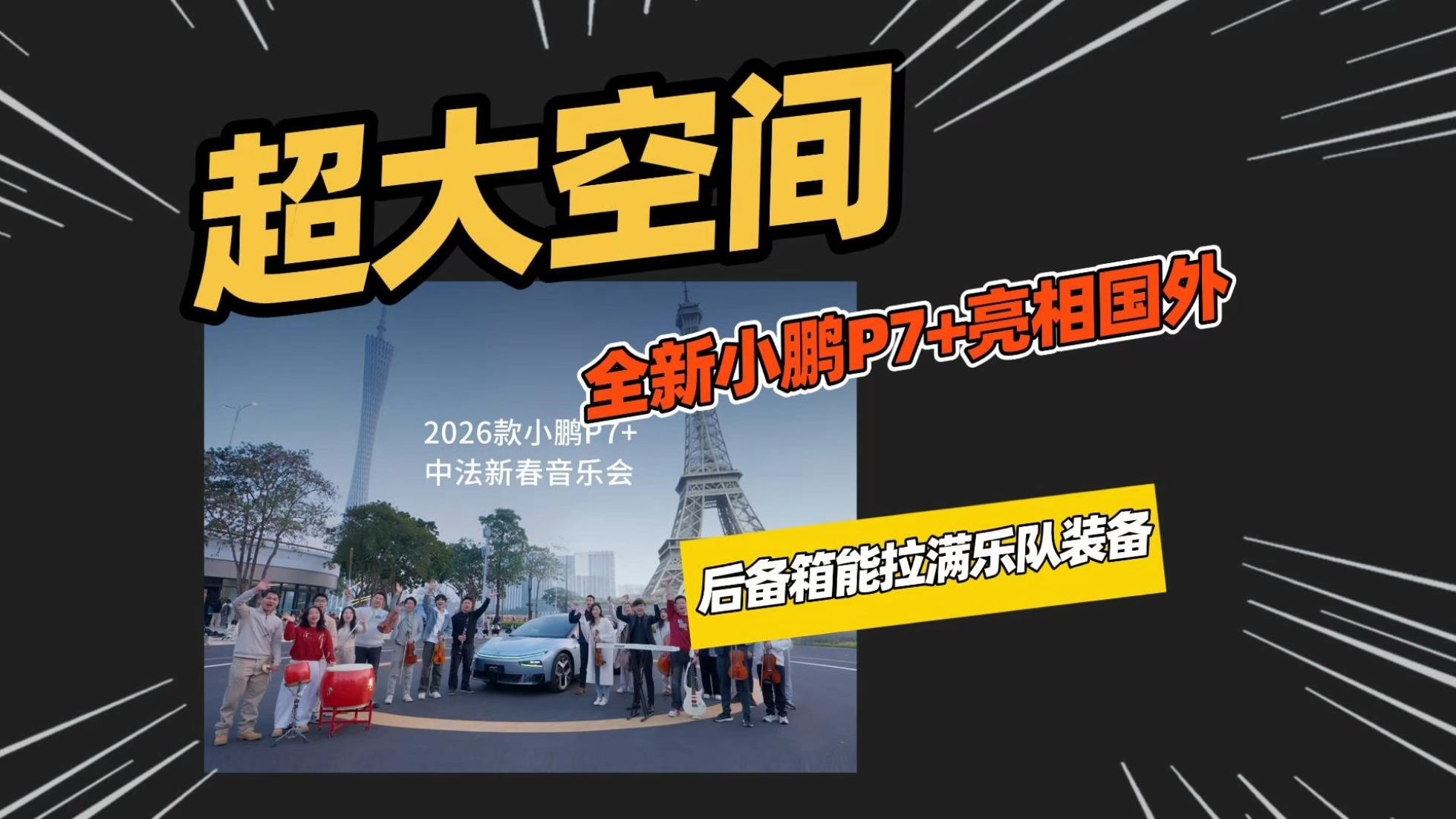 一辆轿车后备箱装满整个乐队乐器,新款小鹏P7+这空间是真不错