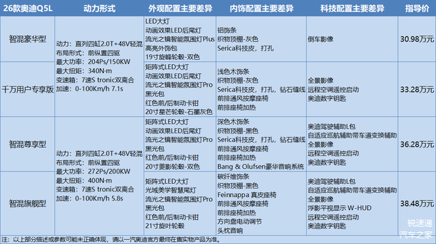 附:2026款一汽奥迪Q5L官方配置表(点击下图可放大观看):