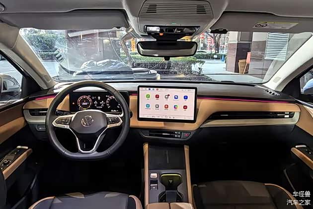 坐进车里,大众这次是真下本了。10.25英寸液晶仪表加12.9英寸中控大屏连成一体,配合电子怀挡和简约布局,科技感直接拉满。AR实景导航、30色氛围灯这些时髦配置都有,还能语音控制空调,日常用车特别方便。