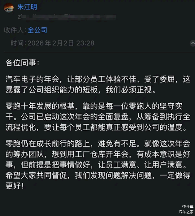 此次零跑汽车“年会风波”的快速处理,为行业提供了一次观察企业内部沟通的样本。