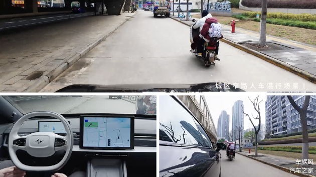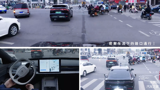 试驾行至武汉特色人车混杂大路口,行人穿梭、助动车随意切入机动车道、机动车伺机Cut-in,智驾系统面临极高挑战。智驾系统灵活避开右侧切入的助动车,精准把控与左侧车辆的车距,如本地司机般果断、快速通过路口。