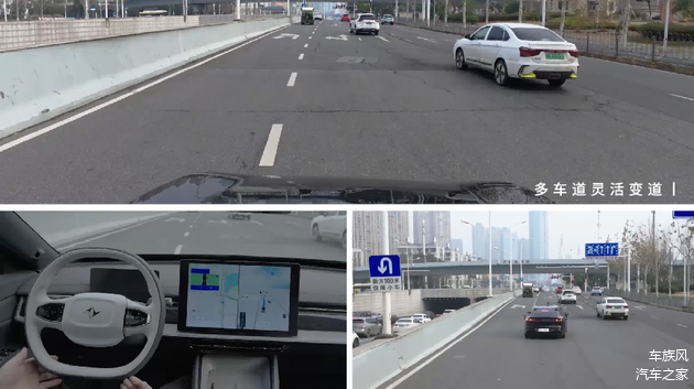 试驾驶出隧道,光线骤明,隧道口车流密集、车速渐升,智驾系统无感知迟滞,精准捕捉各车道车流速度与间隙。通过系统规划,实现连续四次变道,精准把控时机,变道衔接丝滑,无顿挫稳稳驶入目标车道。