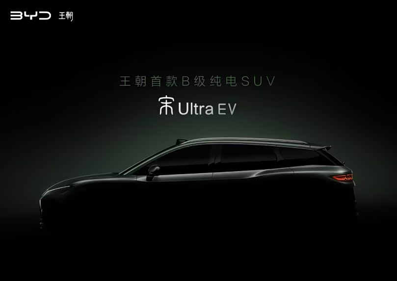 比亚迪王朝网首款B级纯电SUV宋Ultra EV官宣亮相,冲击20-25万级纯电市场。