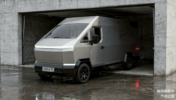 当时,特斯拉公布了一组基于Cybertruck“赛博皮卡”造型风格的厢式货车模型,取名Cybervan,棱角分明的不锈钢外壳,未来感十足。