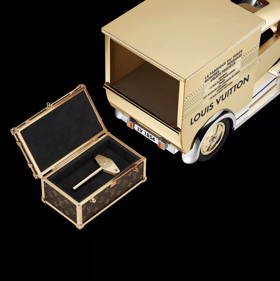 路易威登Camionnette Edition Limitee是一款镶嵌黄金和钻石的机械装置,以20世纪20年代送货车为原型的高概念机械座钟,旨在致敬品牌历史悠久的送货车队。