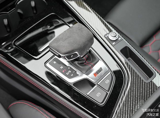 全新奥迪RS5车内采用了大面积黑灰色Alcantara面料铺陈,还加入了大量碳纤维装饰边框,还有大量红色手工双缝线、银色金属装饰条,还有贯穿式空调出风口,再加上优质的真皮皮革材质,打造出奥迪高性能车应有的豪华感和运动感。中控台配备了奥迪RS系列的平底式多功能方向盘,大尺寸换挡拨片、操控岛依旧是大家熟悉的风格,配备了符合人体工学设计的换挡手柄。前排配备了两个赛车化桶装座椅,不仅支持通风、加热、电动腿托,还加入了蜂窝样式的 坐垫和靠背,并提供了四点式安全带(选配),也带来了更好的操控体验。
