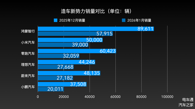 购置税补贴退坡带来的冲击,直接给新能源车市泼了一盆冷水。新势力们还沉浸在去年12月的交付捷报里没回过神,1月销量就近乎腰斩,市场压力瞬间拉满至临界点。