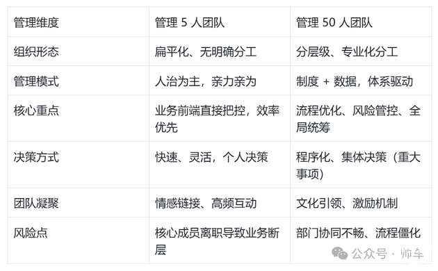 帅车分享 管理5个和管理50个人有什么区别