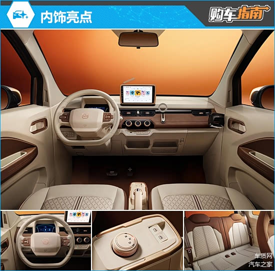 内饰采用大量平直的线条勾勒,营造出开阔的横向空间感。用料方面全系告别塑料材质,采用皮/织物混搭座椅,中控台软性材质覆盖面积也得到大幅提升。甜趣版、英伦版和女王版均配备翻毛材质面板,搭配浅色系内饰,视觉效果精致大气。竞速版采用棕绿双色设计,运动气息更强。
