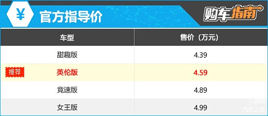 竞速版和女王版的官方指导价在推荐车型的基础上分别增加3000元和4000元,换来的则是运动风格外观套件和车顶行李架,视觉效果固然有所提升,不过对日常实用性影响不大。