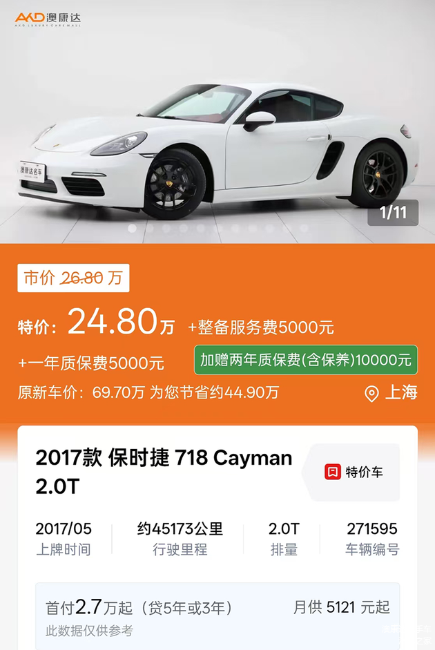 如果你的购车标准是 “真正好开”,澳康达在售这台特价718 Cayman,绝对是这个预算段的明星车型之一,让你体验最纯粹、最正统的保时捷中置引擎跑车。