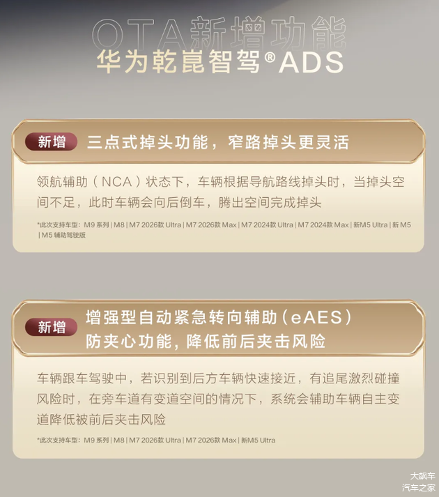 此次OTA升级,是问界M7对其“常用常新”产品理念的又一次践行,通过在智能驾驶与交互体验上的持续迭代,强化其在主流智能SUV市场中的竞争力。