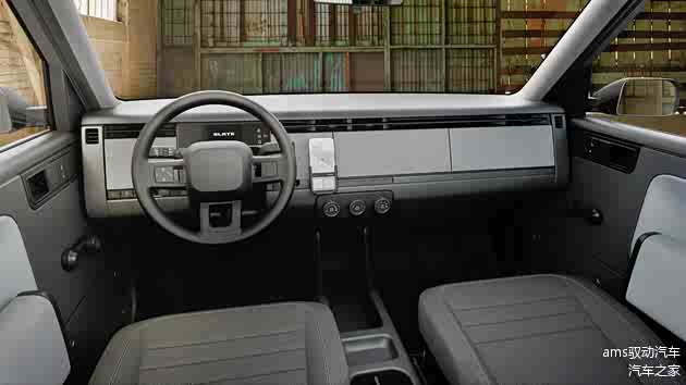 在内饰方面,Slate贯彻了彻底的“减法逻辑”。车内不配备固定式信息娱乐系统,取而代之的是用于放置智能手机或平板电脑的支架,这些设备将承担显示与控制功能。基础操作由传统的物理按键和旋钮完成,这种极简设计是整体成本控制策略的一部分,并在节目中多次被Jay Leno强调为对当今车辆日益复杂化趋势的有意反向选择。