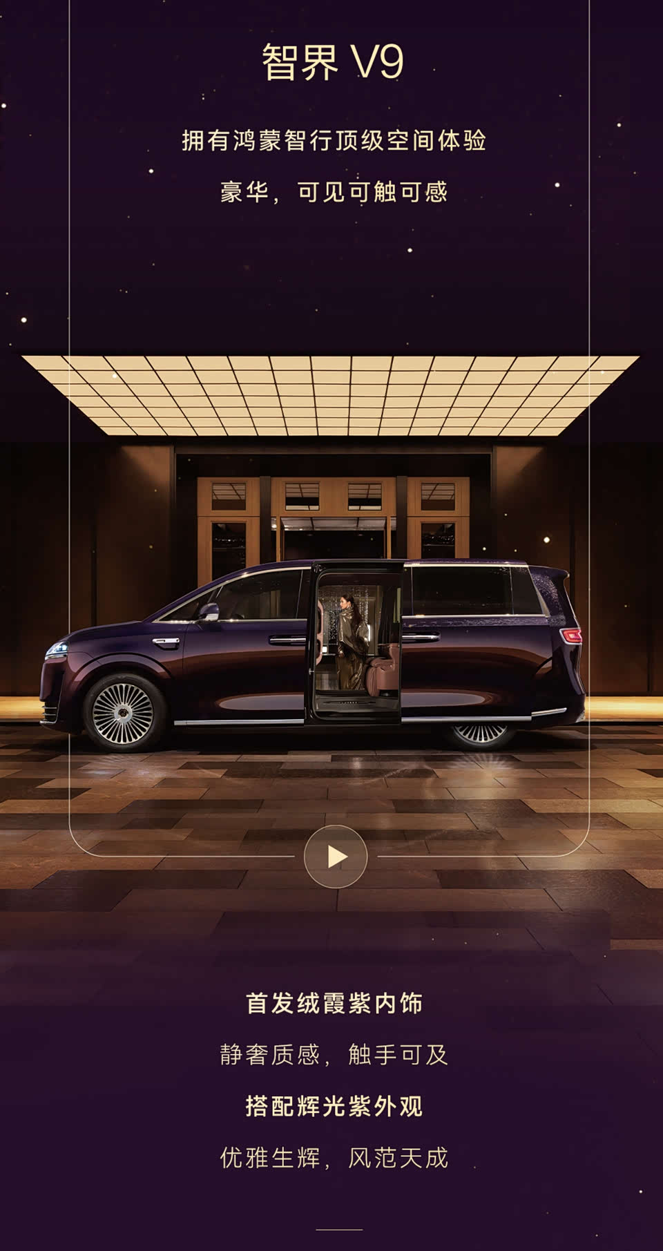 2月5日,#鸿蒙智行旗舰MPV智界V9内饰首发#。智界V9首发绒霞紫内饰,与辉光紫外观共同诠释静奢美学,并搭载二排旋转座椅、太空舒躺模式及零重力座椅模式等智能科技配置,以场景化打造全新用车体验,堪称“MPV科技车皇”。在材质方面,智界V9选用天然实木、NAPPA头层真皮与晶钻切工水晶等高端材质,诠释细腻豪华质感。豪华与科技双重拉满,智界V9的颠覆性产品力已显露“爆款”锋芒,有望彻底激活50万高端MPV市场!