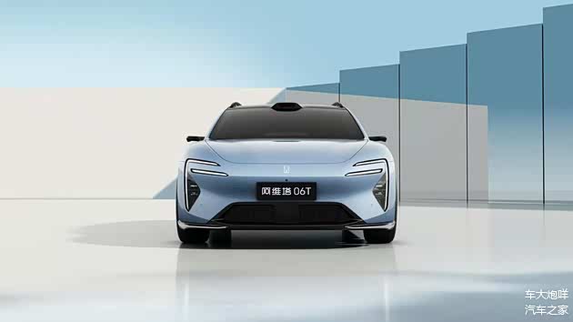 阿维塔06T前脸设计与在售阿维塔06一脉相承,极具辨识度的前灯组也没有改动痕迹,位于机舱盖前端的品牌徽标具备发光功能。在此基础上,阿维塔06T的激光雷达设置于车顶前端,前翼子板等细节处镶嵌有传感器,高阶辅助驾驶能力不会缺席。