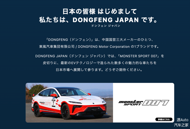 另外,在今年1月的东京改装车展上,东风展台秀出一辆基于eπ007打造的“MONSTER SPORT 007”,与此同时,东风日本官网还预告从“MONSTER SPORT 007”开始,将向日本市场推出一系列采用最新电动汽车技术打造的车型。