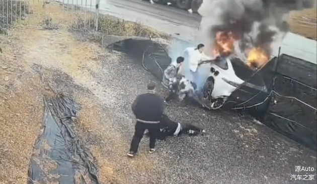到第二位后排乘客被司机和热心路人从车窗救出时,视频已经可以见到明火且火势较猛。到视频结束共有三位后排乘客成功逃生。值得一提的是,根据网传视频的时间水印,该事故或发生在某个星期三的中午12点