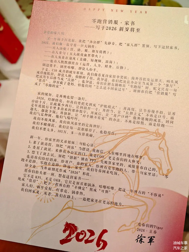 总体而言,徐军的内部信件勾勒了零跑汽车在2026年的发展方向,其中销量目标与运营理念构成了核心内容。公司结合过去的业绩表现与未来规划,展现出稳步推进的意图。对于团队而言,信件中的提醒与鼓励可能转化为实际工作的动力。随着行业环境继续演变,零跑汽车的执行效果将受到关注