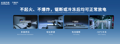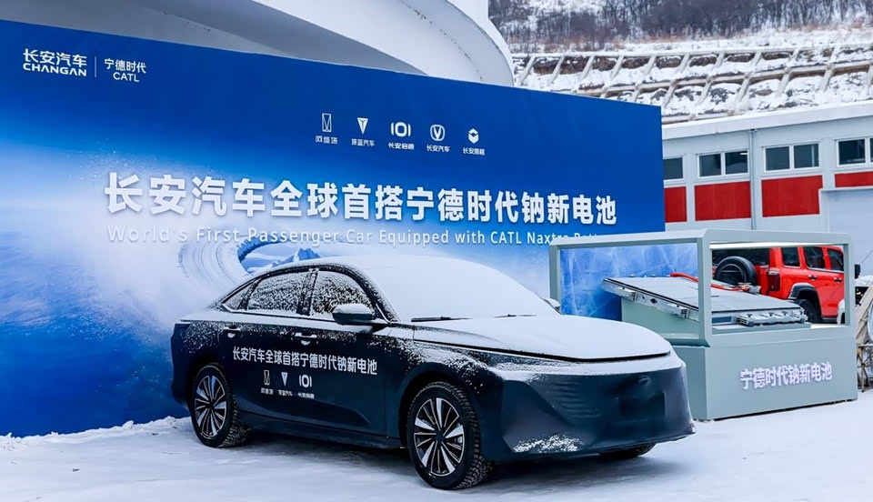 长安汽车和宁德时代在牙克石联合发布钠电战略,全球首款钠电量产乘用车正式亮相,后续长安旗下多个品牌车型都会搭载宁德时代的钠新电池。 新电池纯电续航超 400km,未来还能升级;极寒环境下-30℃放电功率是常规铁锂车型的近 3 倍,-50℃也能稳定放电;安全方面,满电时经挤压、钻击、锯断等极端测试都不起火不爆炸,还能正常放电。