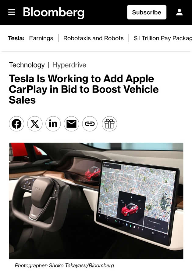 可偏偏在最近,特斯拉做出一个「违背祖宗」的决定:「彭博社」记者马克·古尔曼独家确认,特斯拉正稳步推进Apple CarPlay的开发工作。