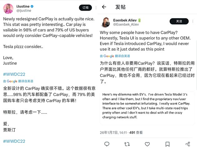 说白了,特斯拉接入CarPlay,只是补个体验短板的商业选择,压根不是认可苹果那套深度整合方案。