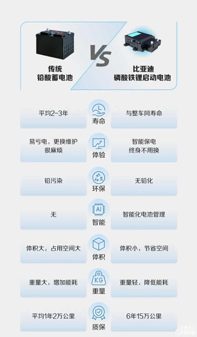 还有,你们知道,比亚迪的低压小电瓶是无需更换,无需保养的吗?换一种问法,只开过比亚迪新能源的车主,你们知道,其他大部分品牌的新能源车,长时间不启动小电瓶也是会亏电的吗?很多其他品牌的新能源车,启动电瓶依然选用铅酸电池,寿命比较短,而且长期不使用会导致亏电打不着火,和燃油车一样。而比亚迪在十年前就使用了铁锂小电瓶,寿命和整车一样,而且无需保养,小电池电量低时动力电池会自动向小电瓶充电,不会出现打不着火,开不了车门的情况。其实这技术不算难,而且比亚迪已经公开了相关专利,不过时至今日依旧有不少车企没有跟进。