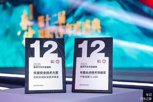 本届盛典上,吉利汽车集团成为全场焦点,一举揽获多项大奖。其中,技术层面斩获的“双料技术大奖”尤为引人注目:“吉利全域安全技术体系”荣获“年度安全技术大奖”,而千里浩瀚G-ASD则凭借具备超高含模量、超大数据集、超强硬件平台优势的WAM(WorldAction Model)世界行为模型,获得“尖点技术突破奖”,系统性地切入智能辅助驾驶安全版图。两项大奖的联动,清晰勾勒出吉利以底层“全域安全”为基石,向上衍生出智能辅助驾驶“全维安全”的战略路径,彰显了其体系化的技术领导力。