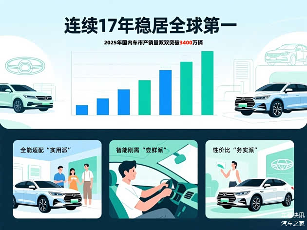 2025年国内车市产销量双双突破3400万辆,连续17年稳居全球第一,而中国品牌的崛起,离不开三类核心消费者的全力支撑,他们的需求,精准踩中了中国车企的发力点。