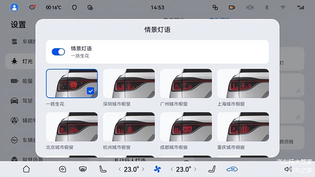 令人眼前一亮的,是那束投射在地面的“马到成功”迎宾灯效。搭载百万像素智慧投影大灯的车型,在用户靠近时,会在地面呈现奔腾的骏马、绚烂的烟花与“2026”字样。这不仅是光影艺术,更是一份真挚的新春祝福。配合车尾新增的“一路生花”情景灯语与覆盖全国数十座城市的专属橱窗图案(如北京胡同、成都熊猫、广州木棉等),每一次出发都成为富有仪式感的体验,让归途充满新春喜气与归属感。