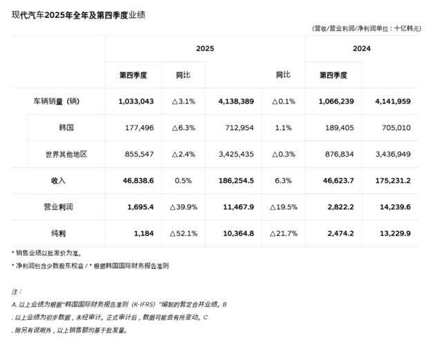 近日,现代汽车公布,2025年第四季度营业利润为1.7万亿韩元(约13亿美元),暴跌40%,远低于伦敦证券交易所集团(LSEG)SmartEstimate预测的2.7万亿韩元。