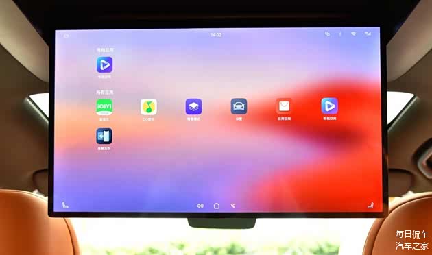全系标配21.4英寸的后排吸顶屏,屏幕边框同样很窄,分辨率达到3K。一天的旅途看似漫长,在车上看几个电影就轻松过去了。