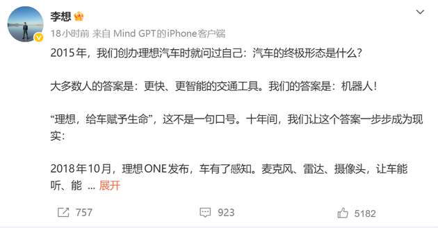 这一点李想已经给出过回答,2015年创办理想汽车时就问过自己:汽车的终极形态是什么?理想的答案是机器人。