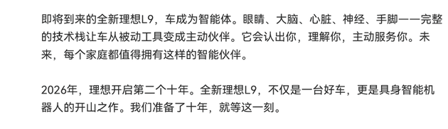 如果说具身智能是理想顶层战略,那眼下的汽车就实施具身智能的关键一环,这也是为什么全新一代L9会如此重要。