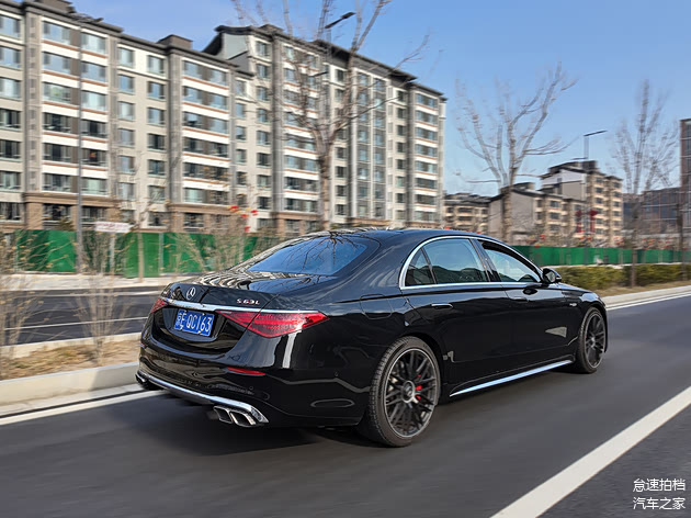 尾部除了红色描边的S63L标识,就属AMG专属方孔双边四出排气最为唬人。当然这辆车也配备空气悬挂,根据不同模式进行高低控制。