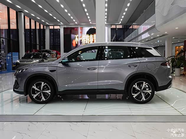 再来看车身侧面部分,车身侧面采用流畅舒展的线条设计,完美兼顾运动感与家用实用性,车身细节处理十分用心,车窗边缘配备简洁的镀铬饰条,提升了整车质感;B柱、C柱采用熏黑处理,营造出悬浮式车顶的视觉效果,时尚感十足。整车尺寸贴合紧凑型SUV定位,车身长度达4735mm,宽度1860mm,轴距更是达到2712mm,为车内宽敞空间奠定了坚实基础。侧面最具亮点的是龙跃腰线,从车头翼子板处延伸至车尾,线条凌厉且富有力量感,搭配下压式车顶设计,营造出低趴的运动姿态,打破了家用SUV的沉闷感。
