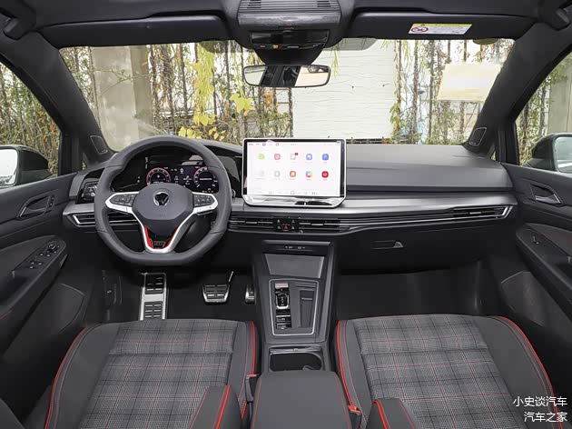 进入车内,2026款高尔夫GTI依然保持了大众家族化的内饰布局,中控区域整体偏向主驾一侧,以驾驶者为核心,配备10.25英寸全液晶仪表盘与12.9英寸悬浮式中控屏的组合,显示清晰直观,内置高通8155芯片和IQ.Connectivity智联系统,支持CarPlay/CarLife手机互联,操作流畅不卡顿。空间表现上,作为一款5门5座两厢车,其空间虽不算越级,但足以满足日常通勤与短途出行需求。前排调整至舒适坐姿后,身高180cm的驾驶者头部仍有1拳余量,不会感到压抑;后排纵向空间适中,对于170cm左右身高的乘客而言,腿部有充足活动空间。