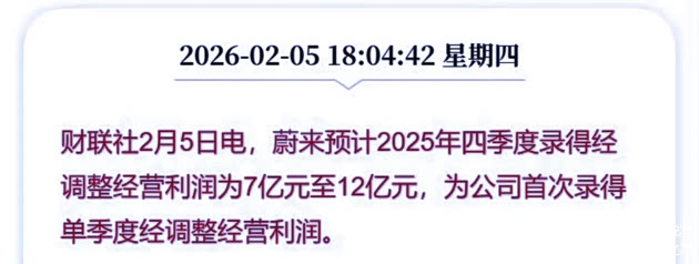 蔚来汽车成立于2014年,截止2025年9月底,累计亏损超过1000亿,是所有新势力品牌中亏损最高的。但就在刚刚,蔚来终于传来重大好消息,2025年Q4经营利润预计7亿到12亿之间,这也意味着蔚来首次实现盈利,李斌果然没有说谎,说Q4实现盈利真就实现盈利。