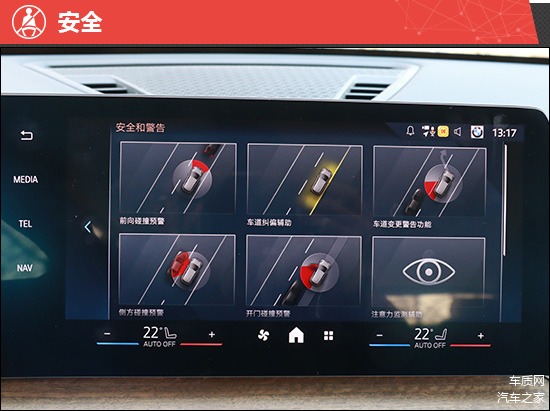 在内部感受评价中,评测车在居家氛围与豪华质感之间取得了一定平衡。座舱内大面积采用软性材质包覆,触感细腻。不过,其B、C柱饰板仍为硬质塑料,在质感营造上没能更进一步。中控屏下方配备了手机无线充电板,夹板式结构可对手机起到良好的固定作用,颇具巧思。乘坐体验方面,M运动座椅造型醒目,对身体的包裹性表现出色,但座椅填充偏硬,长时间乘坐时的舒适性仍有提升空间。