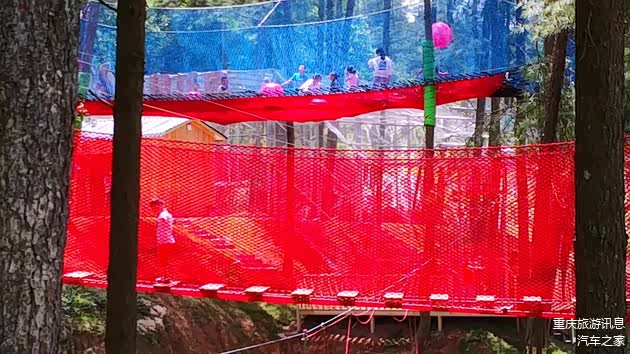 丛林魔网:一个架设在树林间的超大立体绳网系统,孩子可以在上面安全地蹦跳攀爬。