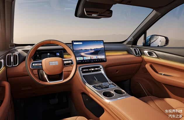 内饰设计以“天地入舱 科技无界”为核心,打破座舱与自然、科技与人文的边界,不止于豪华质感的呈现,更以现代匠心复刻自然体验,让座舱成为可移动的东方雅室。「宽景广厦」座舱设计完美诠释东方居住意境,搭配1.2㎡超大采光面积的可开启式全景天窗,同级最小A柱障碍角带来通透无界的视野,超长轴距加持下实现88%超大得房率,打造同级最大二排乘坐空间,后排座椅放倒可拓展为2.2m大床模式,彻底告别压抑感;「步步锦窗」空调出风口灵感源自中式园林窗格,规整纹路既承载“步步高升”的美好寓意,又能柔和扩散气流;「涟漪映月」Flyme Sound 23扬声器以“西湖映月”为灵感,声起时光影微漾,实现听觉与视觉的深度共鸣;此外,全车多处水晶组件、檀韵天成的生态木纹、全域覆盖的生态麂皮,搭配可场景联动的256色AI氛围灯,让冰冷的科技多了几分自然温润的东方质感。