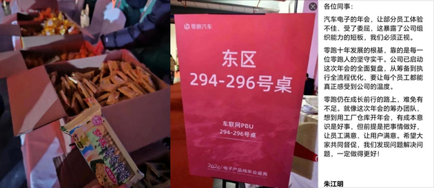 虽然后续公司宣称准备了佛跳墙、龙虾等23道菜的豪华晚餐,并抽奖20部iPhone17,但现场反馈却是菜品上桌已凉透。这种“冰火两重天”的体验,直接引爆零跑内部部分员工的情绪。