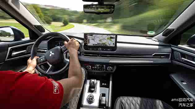 顺带一提:三菱在材料选择上已不再像过去那样节省。柔软包覆的真皮座椅、扶手以及全座椅空调系统显著提升了舒适感。不过,测试车辆中大量使用的硬塑料,散发出一种非常强烈、独特的新车气味。好在,实体按键和旋钮依然大量保留:方向盘、空调系统以及信息娱乐的核心功能,都无需完全依赖触控屏。
