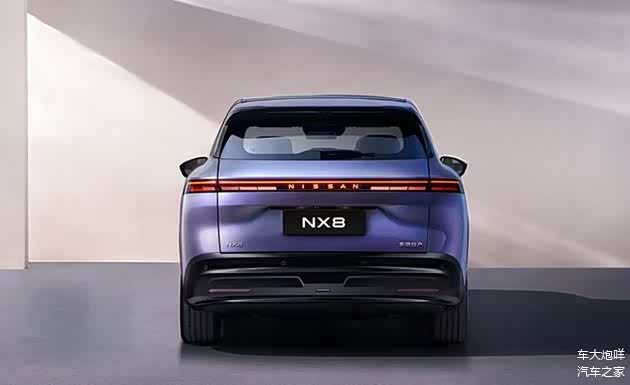外观方面,东风日产NX8前脸部分的设计风格与在售东风日产N6一脉相承,隐藏式门把手设计也未有缺席。在此基础上,东风日产NX8配备分体式风格前灯组并集成贯穿式灯带,后尾灯组同样采用贯穿式造型,并且前品牌徽标与尾部的“NISSAN”字母标识均可点亮。车身尺寸方面,东风日产NX8的长宽高分别为4870/1920/1680毫米,轴距2917毫米,采用五座布局。