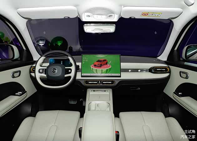 全新奇瑞QQ3 EV车内是典型新能源设计风格,驾驶者面前全液晶仪表屏,中控屏为15.6英寸,搭载骁龙8155芯片,配备Carmind大模型语音交互系统,怀挡设计,副仪表台配有手机无线充电面板,另外新车还配有256色氛围灯,夜幕下增添一丝丝情趣。